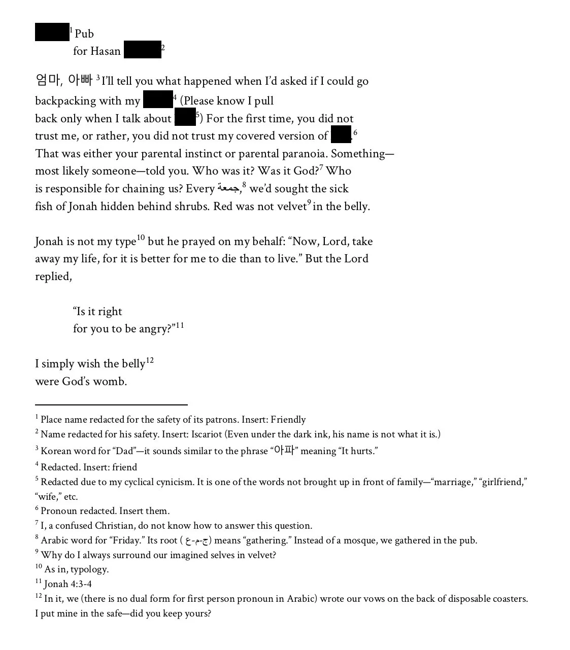 Chi Kyu Lee is a poet. He is originally from Seoul, Korea but grew up in many places (perhaps too many). He recently graduated from Cornell University and is pursuing an MFA degree in creative writing at the University of Minnesota. He loves to read and watch anything queer. His childhood dream was to be a polyglot—surprise him with your Arabic or ASL and watch him stutter and squirm! He lives in Minneapolis with his plant babies.
